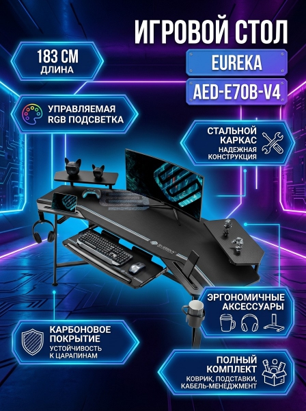 Стол компьютерный для геймеров Eureka AED-E70B-V4 - ДоставкаДоставка по Санкт-Петербургу: бесплатно, 2-3 дня Доставка по России: стоимость уточняйте у оператора. Стол компьютерный для геймеров Eureka AED-E70B-V4 - Отзывы0.0