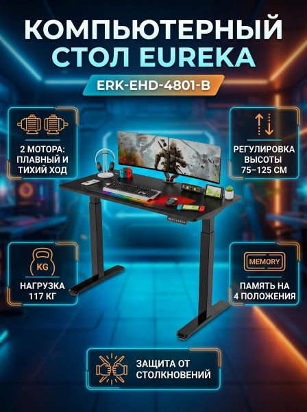 Компьютерный стол c электрорегулировкой Eureka ERK-EHD-4801-B - БрендСтрана бренда: КНР Премиальность бренда:Компьютерный стол c электрорегулировкой Eureka ERK-EHD-4801-B - Характеристики