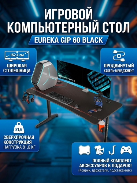 Компьютерный стол для геймеров Eureka GIP 60 Black - ДоставкаДоставка по Санкт-Петербургу: бесплатно, 2-3 дня Доставка по России: стоимость уточняйте у оператора. Компьютерный стол для геймеров Eureka GIP 60 Black - Отзывы5.0