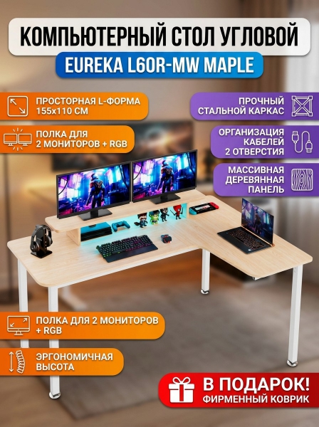 Стол для компьютера угловой Eureka L60R-MW Maple - Обзор ТОП-10 лучших геймерских столов 2025 🏆: Обзор и рейтинг