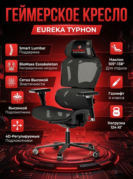 Компьютерное геймерское кресло Eureka Typhon - Обзор ТОП-10 лучших ортопедических кресел 2025 🏆: Обзор и рейтинг