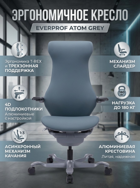 Эргономичное кресло Everprof Atom Grey экокожа, цвет серый - ДоставкаДоставка по Санкт-Петербургу: бесплатно, 2-3 дня Доставка по России: стоимость уточняйте у оператора. Эргономичное кресло Everprof Atom Grey экокожа, цвет серый - Отзывы0.0