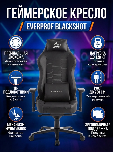 Геймерское кресло Everprof Blackshot экокожа, черный - ДоставкаДоставка по Санкт-Петербургу: бесплатно, 2-3 дня Доставка по России: стоимость уточняйте у оператора. Геймерское кресло Everprof Blackshot экокожа, черный - Отзывы0.0