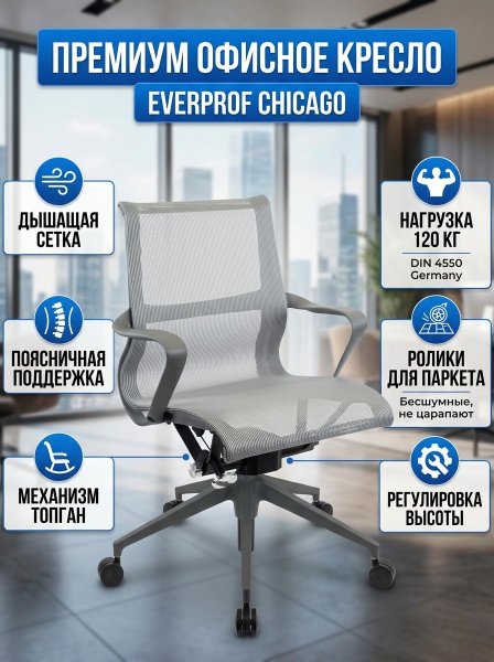 Премиум кресло для персонала Everprof Chicago - ОписаниеСомневаетесь? - Посмотрите рейтинг ТОП-10 по категории «Ортопедические кресла»Премиум офисное кресло с обивкой из сетчатой ткани. Кресло оснащено механизмом качания ТопГан с возможностью фиксации кресла в рабочем положении.