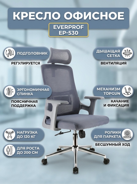 Кресло офисное Everprof EP-530 сетка - ОписаниеСомневаетесь? - Посмотрите рейтинг ТОП-10 по категории «Ортопедические кресла»Кресло Everprof EP-530 для офисных работников.