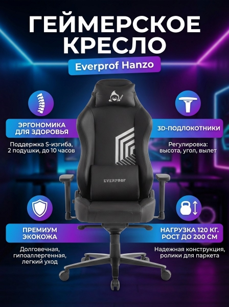 Геймерское кресло Everprof Hanzo экокожа, чёрный