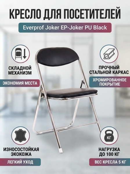 Кресло для посетителей Everprof Joker Экокожа - ОписаниеСомневаетесь? - Посмотрите рейтинг ТОП-10 по категории «Ортопедические кресла»Отличный офисный стул Joker. Просто, практично, надежно. Складной механизм позволяет убрать стул после использования, освободив тем самым драгоценное офисное пространство.