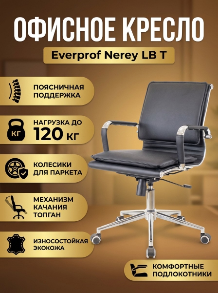 Кресло для оператора Everprof Nerey LB T - ОписаниеСомневаетесь? - Посмотрите рейтинг ТОП-10 по категории «Ортопедические кресла»Операторское кресло Nerey LB T, экокожа.