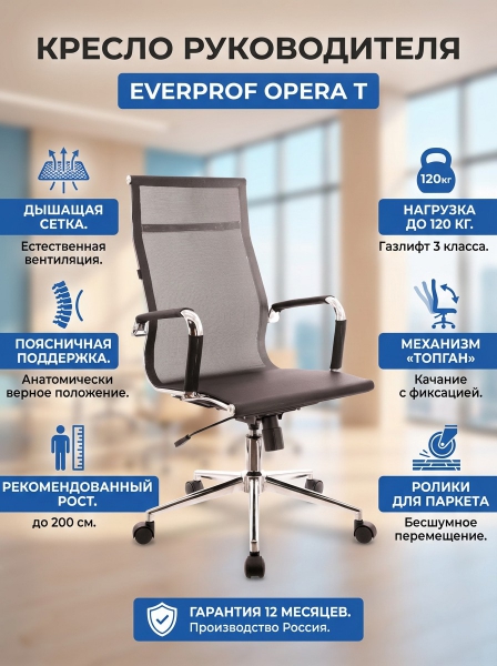 Кресло компьютерное Everprof Opera T - ОписаниеСомневаетесь? - Посмотрите рейтинг ТОП-10 по категории «Ортопедические кресла»Кресло для руководителя Opera Т, сетка черного цвета.