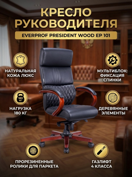 Кресло руководителя Everprof President Wood кожа - Обзор ТОП-10 лучших ортопедических кресел 2025 🏆: Обзор и рейтинг
