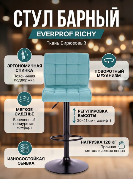 Стул барный Everprof Richy ткань - ДоставкаДоставка по Санкт-Петербургу: 795 ₽, 2-3 дня Доставка по России: стоимость уточняйте у оператора. Стул барный Everprof Richy ткань - Отзывы0.0