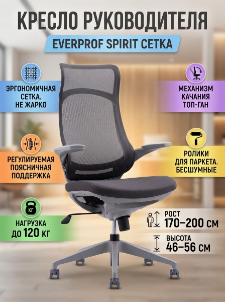 Кресло руководителя Everprof Spirit сетка, серый - Обзор ТОП-10 лучших ортопедических кресел 2025 🏆: Обзор и рейтинг