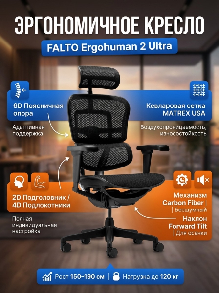 Эргономичное кресло Falto Ergohuman 2 Ultra сетка, черный - Обзор ТОП-10 лучших ортопедических кресел 2025 🏆: Обзор и рейтинг