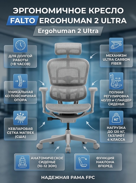 Эргономичное кресло Falto Ergohuman 2 Ultra сетка, серый - ДоставкаДоставка по Санкт-Петербургу: бесплатно, 2-3 дня Доставка по России: стоимость уточняйте у оператора. Эргономичное кресло Falto Ergohuman 2 Ultra сетка, серый - Отзывы0.0