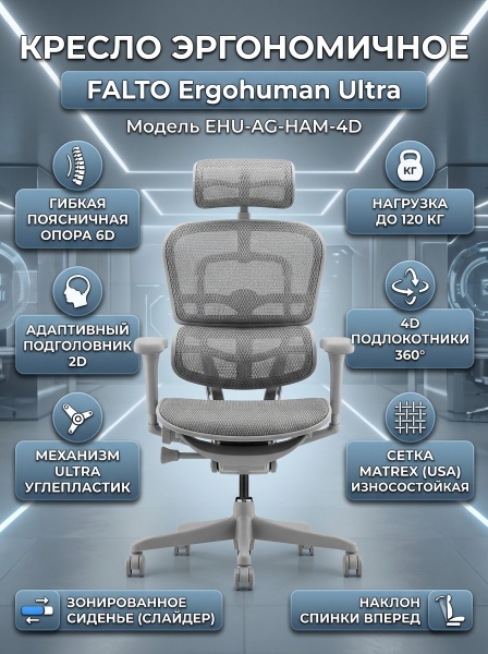 Кресло эргономичное Falto Ergohuman Ultra (серый каркас/сетка светлая) - ДоставкаДоставка по Санкт-Петербургу: бесплатно, 2-3 дня Доставка по России: стоимость уточняйте у оператора. Кресло эргономичное Falto Ergohuman Ultra (серый каркас/сетка светлая) - Отзывы0.0