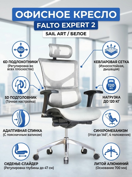 Офисное кресло Falto Expert 2 Sail Art белое - Обзор ТОП-10 лучших ортопедических кресел 2025 🏆: Обзор и рейтинг