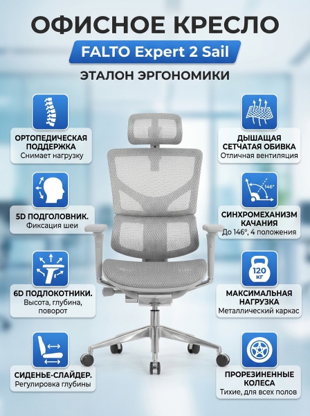 Офисное кресло Falto Expert 2 Sail HSAM 01-G NEW - Обзор ТОП-10 лучших ортопедических кресел 2025 🏆: Обзор и рейтинг
