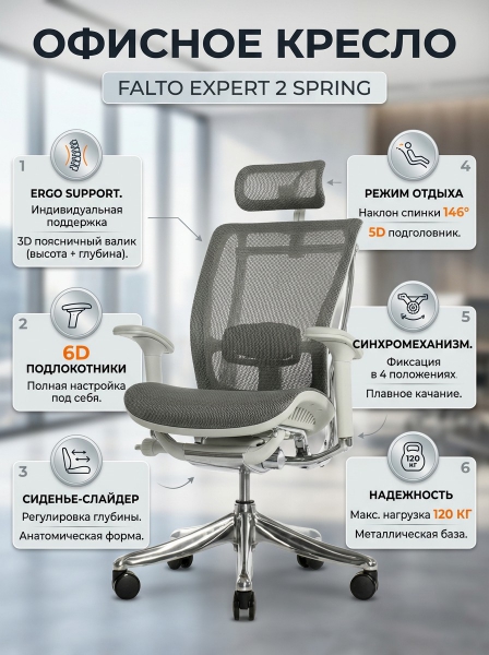 Офисное кресло Falto Expert 2 Spring HSPM 01 G серое - Преимущества