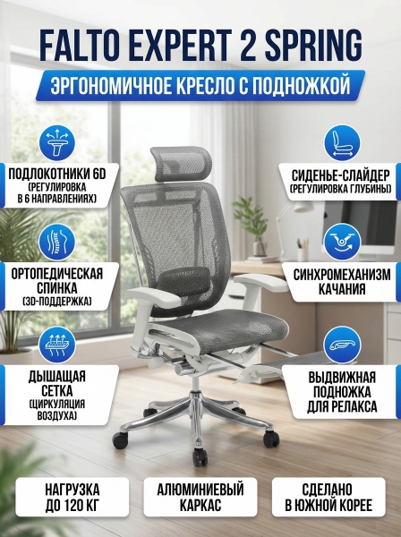 Офисное кресло Falto Expert 2 Spring RSPM 01-G - Обзор ТОП-10 лучших ортопедических кресел 2025 🏆: Обзор и рейтинг