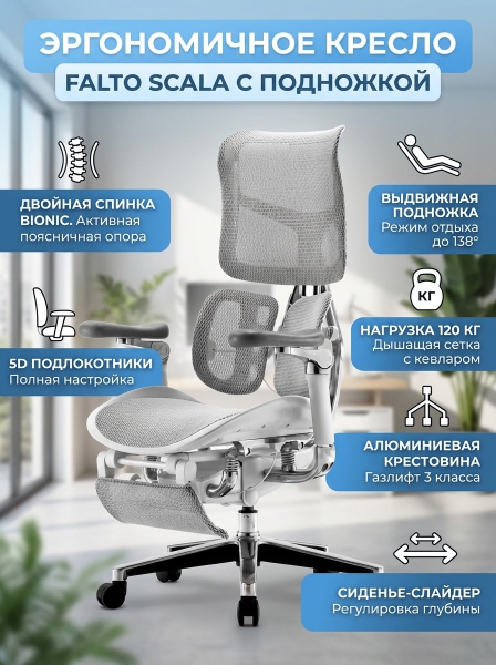Эргономичные кресло с подножкой Falto Scala светлый каркас - ДоставкаДоставка по Санкт-Петербургу: бесплатно, 2-3 дня Доставка по России: стоимость уточняйте у оператора. Эргономичные кресло с подножкой Falto Scala светлый каркас - Отзывы0.0