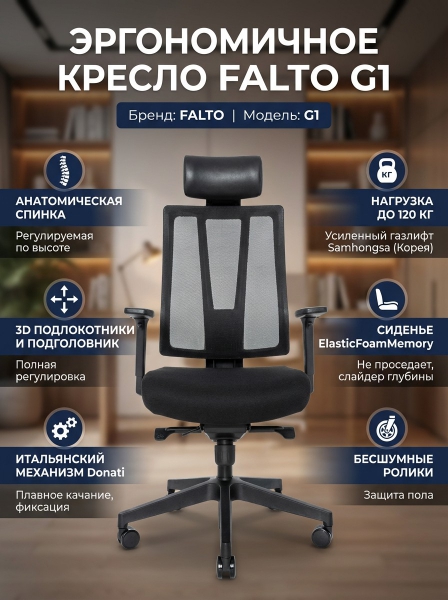 Эргономичное кресло Falto G1 черная рама - Обзор ТОП-10 лучших ортопедических кресел 2025 🏆: Обзор и рейтинг