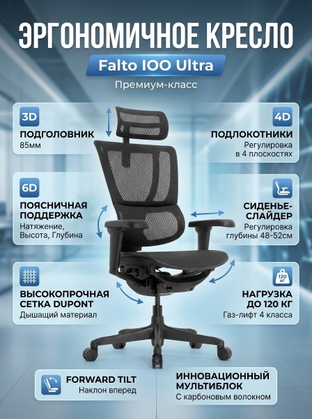 Компьютерное кресло Falto IOO Ultra - Обзор ТОП-10 лучших ортопедических кресел 2025 🏆: Обзор и рейтинг
