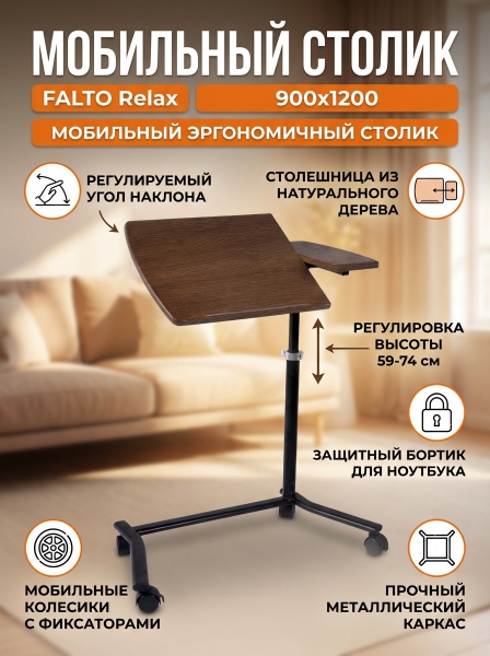 Мобильный столик для ноутбука Falto Relax - ДоставкаДоставка по Санкт-Петербургу: бесплатно, 2-3 дня Доставка по России: стоимость уточняйте у оператора. Мобильный столик для ноутбука Falto Relax - Отзывы5.0
