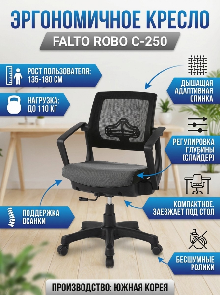 Эргономичное кресло Falto Robo С-250 черный каркас - Описание