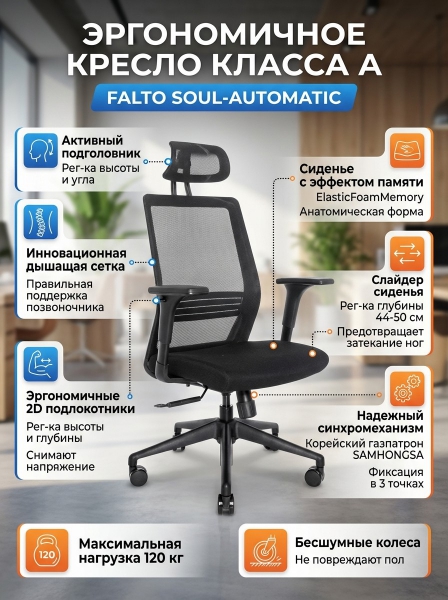 Кресло для персонала Falto Soul-Automatic, черный каркас - Обзор ТОП-10 лучших ортопедических кресел 2025 🏆: Обзор и рейтинг