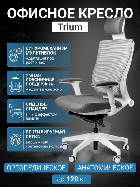 Эргономичное кресло Falto Trium с белым каркасом - ОписаниеСомневаетесь? - Посмотрите рейтинг ТОП-10 по категории «Ортопедические кресла»Изысканные плавные линии, высококачественные материалы и инновационные технологии делают кресло из модельного ряда Falto-Trium отличным решением для обустройства рабочей зоны в офисе или домашнем кабинете. Небольшие матовые ручки для регулировки положения спинки и скрытые рычаги для отладки глубины посадки не бросаются в глаза. Легкий глянец на основной крышке и плавные линии спинки превращают его в один из ярких элементов интерьера.