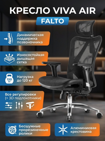 Кресло компьютерное сетчатое Falto Viva Air черный каркас - Обзор ТОП-10 лучших ортопедических кресел 2025 🏆: Обзор и рейтинг