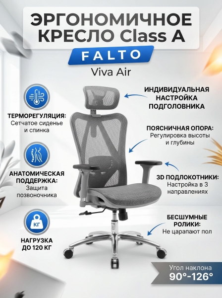 Кресло компьютерное сетчатое Falto Viva Air серый каркас - Обзор ТОП-10 лучших ортопедических кресел 2025 🏆: Обзор и рейтинг