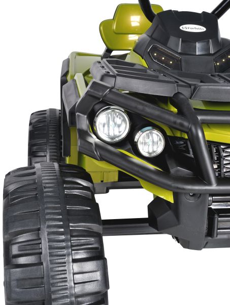 С помощью пульта осуществляется движение вперед-назад и повороты (родители смогут управлять скоростью и маневрами юных гонщиков). MP3 плеер работает от карты памяти или USB, есть радио приёмник, ваш ребенок почувствует себя как за рулем взрослого квадроцикла. Есть световые эффекты.
