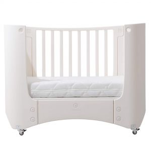 Кроватка имеет 2 уровня регулировки ложа. Ложе кроватки выполнено из деревянных ламелей массива берёзы. Данная модель кроватки имеет неподвижный бортик, но предусмотрена откидная планка. Кроватка оснащена механизмом поперечного маятника, что позволит укачивать вашего малыша.
