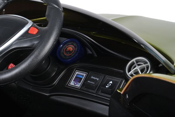 На приборной панели расположена автомагнитола с индикатором заряда батареи. Звуковые эффекты: заводские мелодии, звук клаксона, функция раннего обучения (на английском языке). Так же есть функция независимое качание,которая запускается с кнопки.