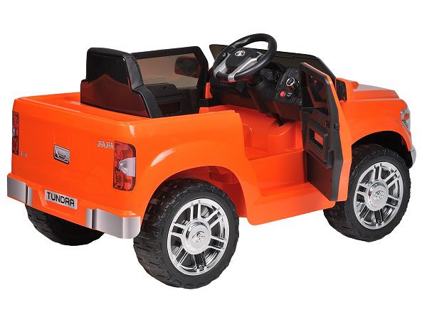 Электромобиль Farfello Tundra JE1703 оранжевый - ОписаниеДизайн выполнен по лицензии от концерна Toyota. Небольшие дверцы с тонированными окошками открываются и захлопываются на замки-фиксаторы. Кресло с чехлом из эко-кожи, цельной спинкой и подголовником, для комфортного катания малыша. Сиденье оборудовано поясным ремнём безопасности с регулировкой натяжения.