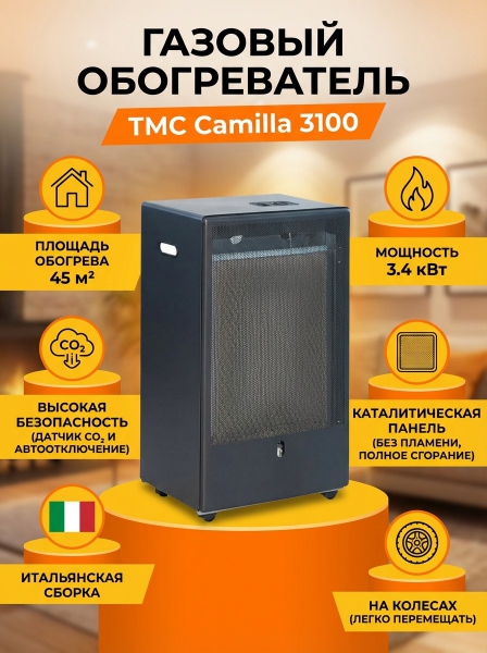 Газовый обогреватель TMC Camilla 3100 - ДоставкаДоставка по Санкт-Петербургу: бесплатно, 2-3 дня Доставка по России: стоимость уточняйте у оператора. Газовый обогреватель TMC Camilla 3100 - Отзывы5.0