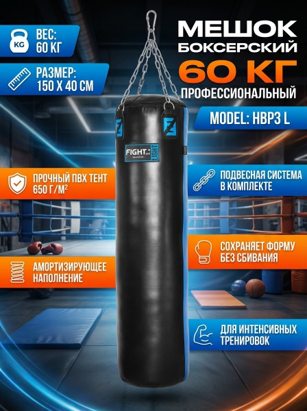 Мешок FightTech HBP3 L создан для занятий классическим и тайским боксом, а также другими контактными видами спорта. Груша имеет вес 60 кг, поэтому подходит для профессиональных тренировок.