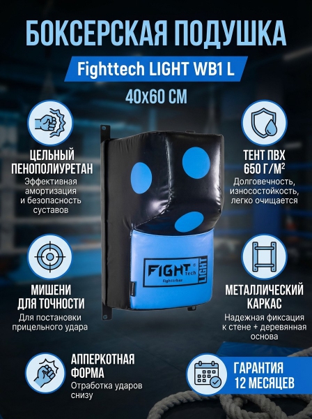 Апперкотная подушка Fighttech Light Wall Bag WB1 L - БрендСтрана бренда: Россия Страна производства: Россия Премиальность бренда:Апперкотная подушка Fighttech Light Wall Bag WB1 L - Характеристики