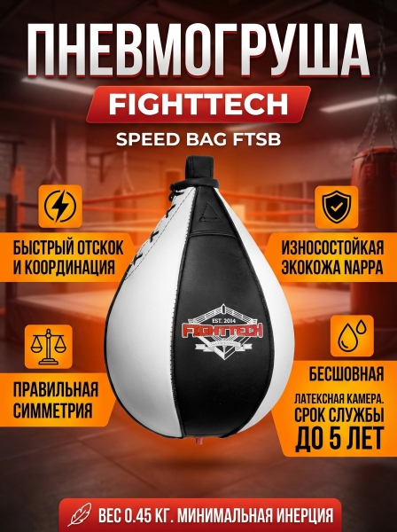Пневмогруша Fighttech Speed Bag FTSB - ОписаниеСомневаетесь? - Посмотрите рейтинг ТОП-10 по категории «Боксерские мешки»Пневмогруша Speed Bag, модель имеет правильную симметрию и развесовку, обеспечивает быстрый отскок. Внешний чехол для груши изготовлен из экокожи Nappa (сверхустойчева к износу, истиранию и многократному изгибу).