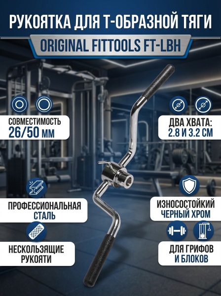 Рукоятка на гриф для Т-образной тяги Original FitTools FT-LBH - ОписаниеСомневаетесь? - Посмотрите рейтинг ТОП-10 по категории «Силовые тренажеры»Рукоятка на гриф для Т-образной тяги (ф26, ф50) с хромированным покрытием.