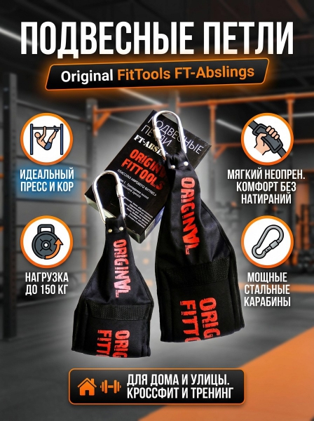Подвесные петли Original FitTools FT-Abslings - ОписаниеСомневаетесь? - Посмотрите рейтинг ТОП-10 по категории «Силовые тренажеры»Подвесные петли FT-Abslings предназначены для тренировок пресса на турнике. Петли изготовлены из крепкого и надежного нейлона, снабжены мощными стальными карабинами для надежного крепления к турнику.