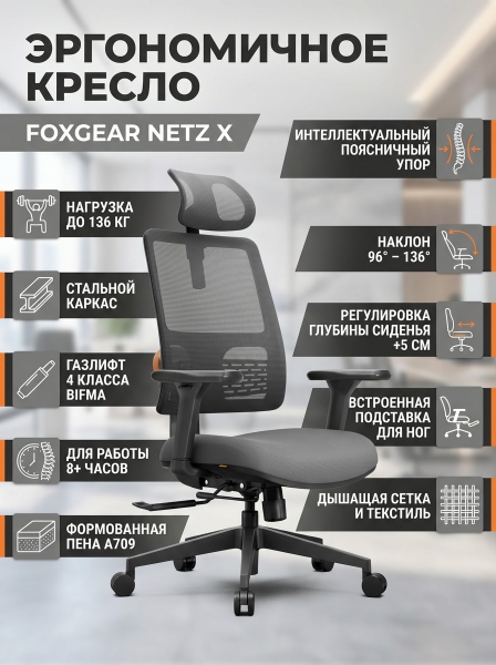 Эргономичное кресло FoxGear NETZ модель X - Преимущества