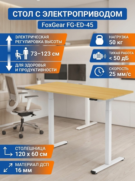 Стол для компьютера с электроприводом FoxGear FG-ED-45 - ДоставкаДоставка по Санкт-Петербургу: бесплатно, 2-3 дня Доставка по России: стоимость уточняйте у оператора. Стол для компьютера с электроприводом FoxGear FG-ED-45 - Отзывы5.0