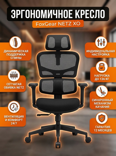 Эргономичное компьютерное кресло FoxGear NETZ модель XO - office edition - Обзор ТОП-10 лучших ортопедических кресел 2025 🏆: Обзор и рейтинг