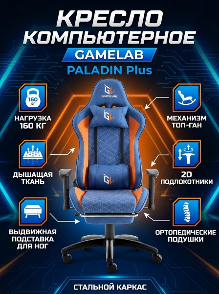 Кресло компьютерное игровое GAMELAB PALADIN Plus Breeze Blue-Orange - ДоставкаДоставка по Санкт-Петербургу: бесплатно, 2-3 дня Доставка по России: стоимость уточняйте у оператора. Кресло компьютерное игровое GAMELAB PALADIN Plus Breeze Blue-Orange - Отзывы0.0