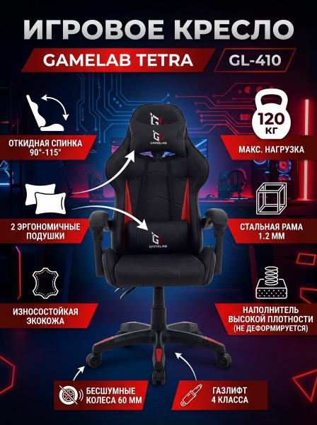 Кресло компьютерное игровое GameLab Tetra Black - ДоставкаДоставка по Санкт-Петербургу: бесплатно, 2-3 дня Доставка по России: стоимость уточняйте у оператора. Кресло компьютерное игровое GameLab Tetra Black - Отзывы0.0