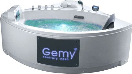 Гидромассажная ванна с холодильником Gemy G9067 O - ОписаниеУгловая ванна из акрила станет излюбленным местом отдыха после рабочего дня. Модель традиционно оборудована массажными, озонирующими и световыми системами. Комплектация Gemy G 9067 O (150х150 см) включает холодильник, телевизор, FM-приемник и телефон, функцию контроля перелива, пульты дистанционного и электронного управления. Базовый цвет модели — белый, по заказу изготавливается ванна из зеленого акрила.
