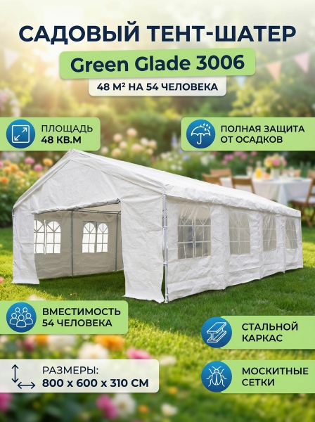 Садовый тент-шатер Green Glade 3006 - ДоставкаДоставка по Санкт-Петербургу: бесплатно, 2-3 дня Доставка по России: стоимость уточняйте у оператора. Садовый тент-шатер Green Glade 3006 - Отзывы0.0