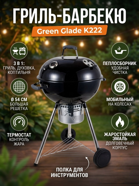 Гриль-барбекю Green Glade K222 - ДоставкаДоставка по Санкт-Петербургу: бесплатно, 2-3 дня Доставка по России: стоимость уточняйте у оператора. Гриль-барбекю Green Glade K222 - Отзывы0.0